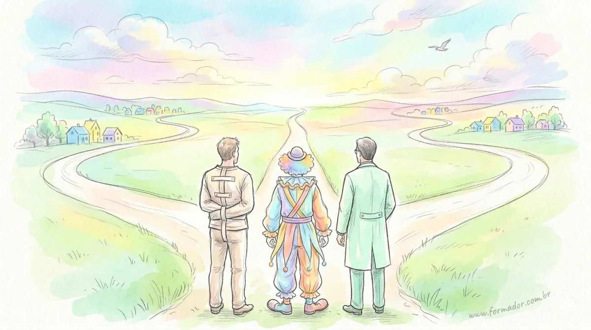 Caminhos Profissionais Desenrolar O louco: No pátio de um manicômio encontrei um jovem com rosto pálido, bonito e transtornado. Sentei-me junto a ele sobre a banqueta e lhe perguntei: - Por que você está aqui? Olhou-me com olhar atônito e me disse: - É uma pergunta pouco oportuna a tua, mas vou respondê-la. Meu pai queria fazer (...) Aviso Cadastre-se gratuitamente para receber um email por semana contendo um link mágico para consultar o desenrolar de uma das dinâmicas de nosso site. Dica Torne-se um ASSINANTE e veja, além do desenrolar, os objetivos, material necessário, duração, dicas de outros usuários e outras dinâmicas. LISTA DE DINÂMICAS Dinâmica enviada por: Silvia Osso Consultora Empresarial siosso@uol.com.br